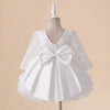 Vestido Clara - Luxo Manga Longa em Renda e Tule – Branco Clássico com Laço
