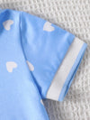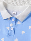 Charme dentro e fora da brincadeira: A combinação do azul céu vibrante com a estampa de mini corações brancos cria um visual fresco, moderno e super fotogênico. A saia plissada garante aquele movimento lindo ao girar, enquanto a gola polo adiciona um toque clássico, deixando o look pronto para qualquer ocasião casual, do parquinho ao passeio no shopping.